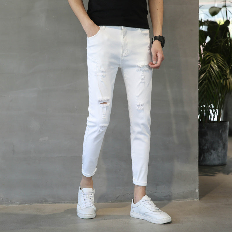 Men's White Slim Fit Jeans—Stretch Casual Pants