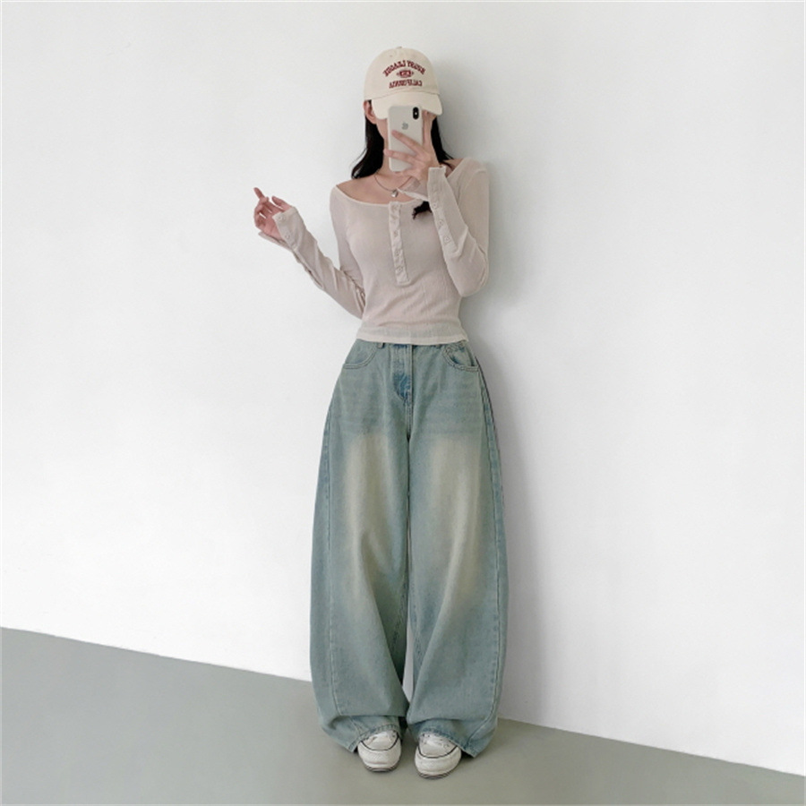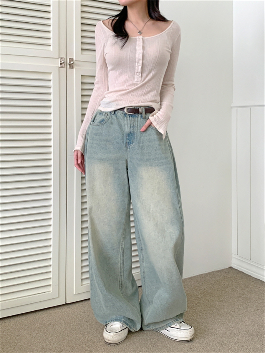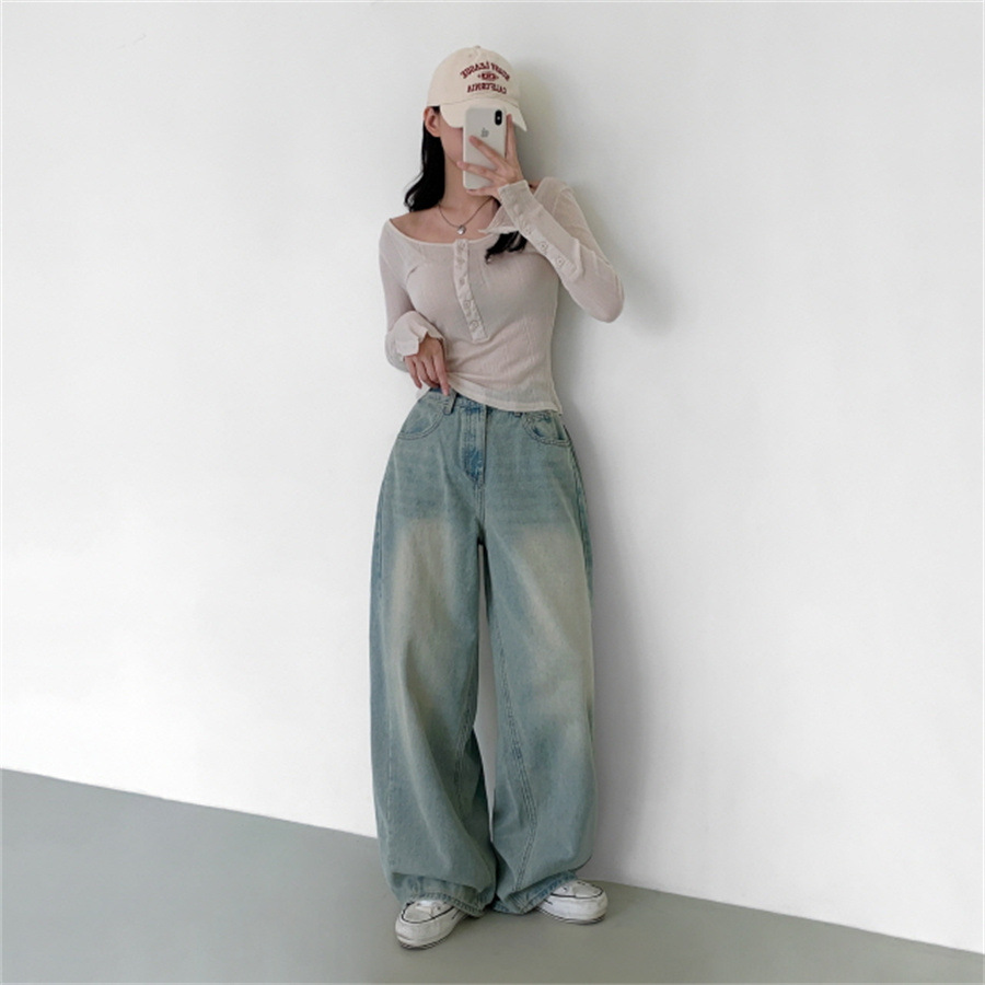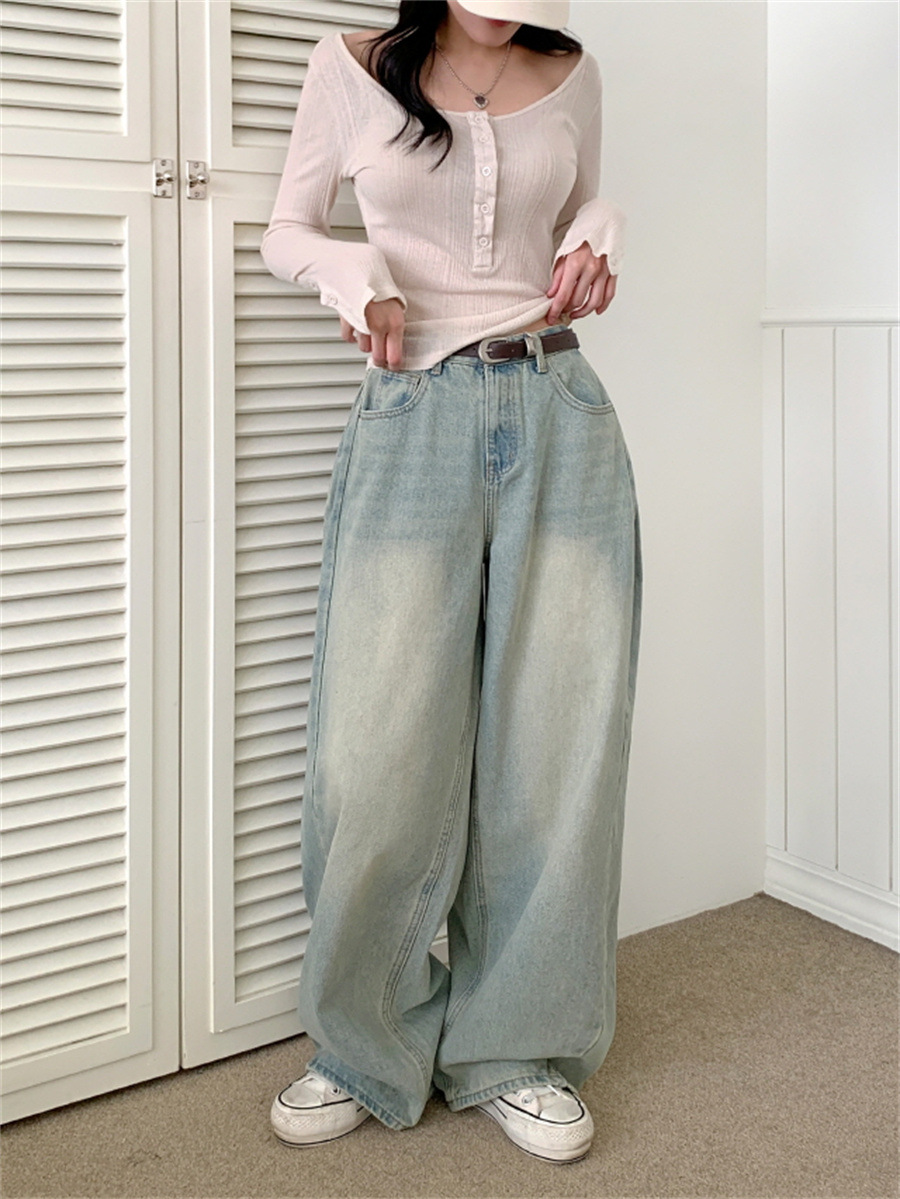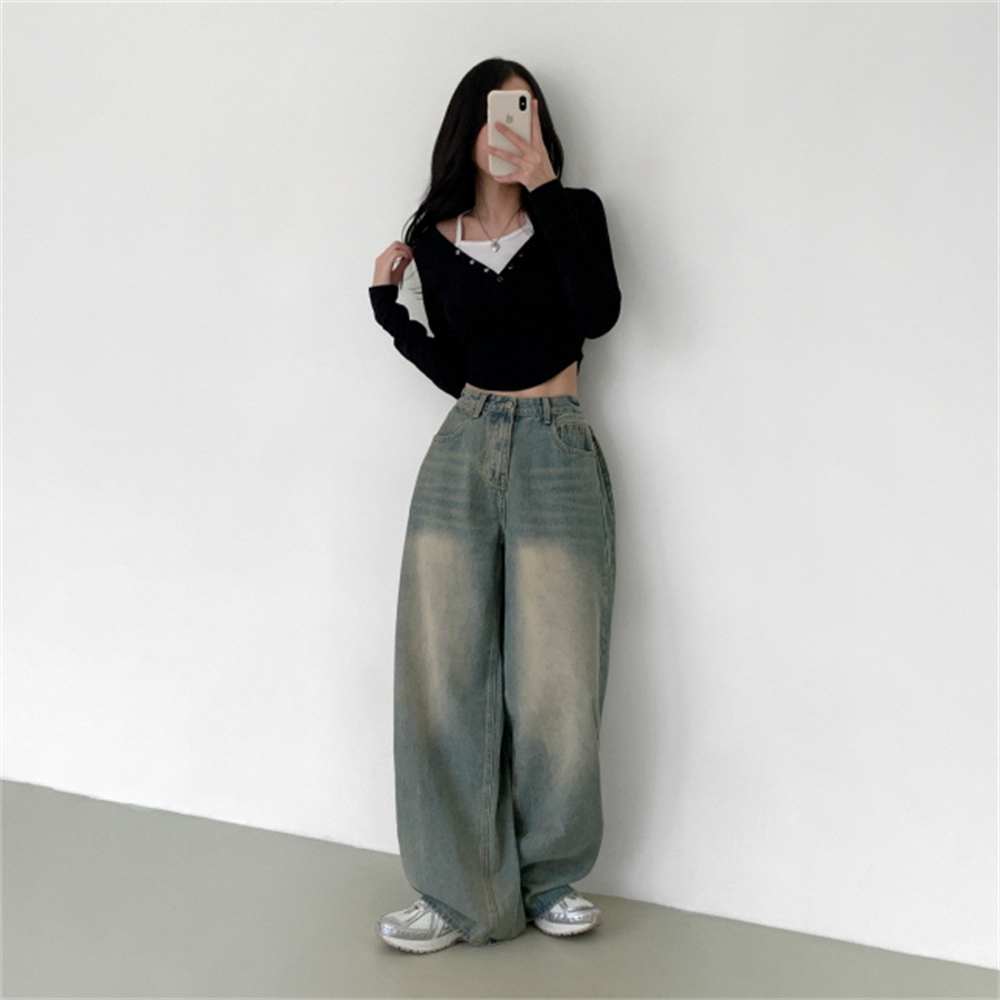 Elevate your casual wardrobe with these Women’s Retro High Waist Loose Straight Jeans. Designed with a flattering high-waist fit and wide-leg cut, these jeans bring both comfort and timeless style. Made from durable denim with a cotton composition, they feature an inelastic structure for a classic retro look. Available in versatile colors, they’re perfect for pairing with sweaters, blouses, or casual tops for an effortless streetwear vibe.