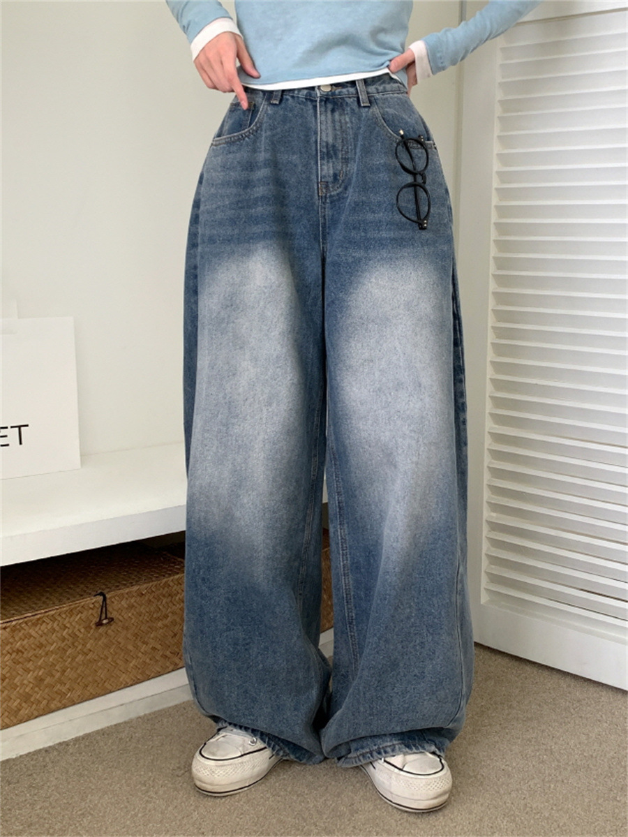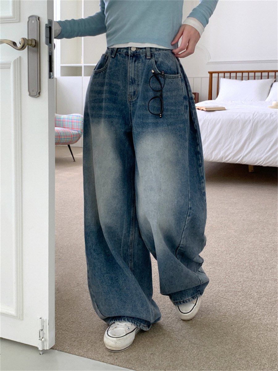 Women's Retro High Waist Lose Straight Jeans